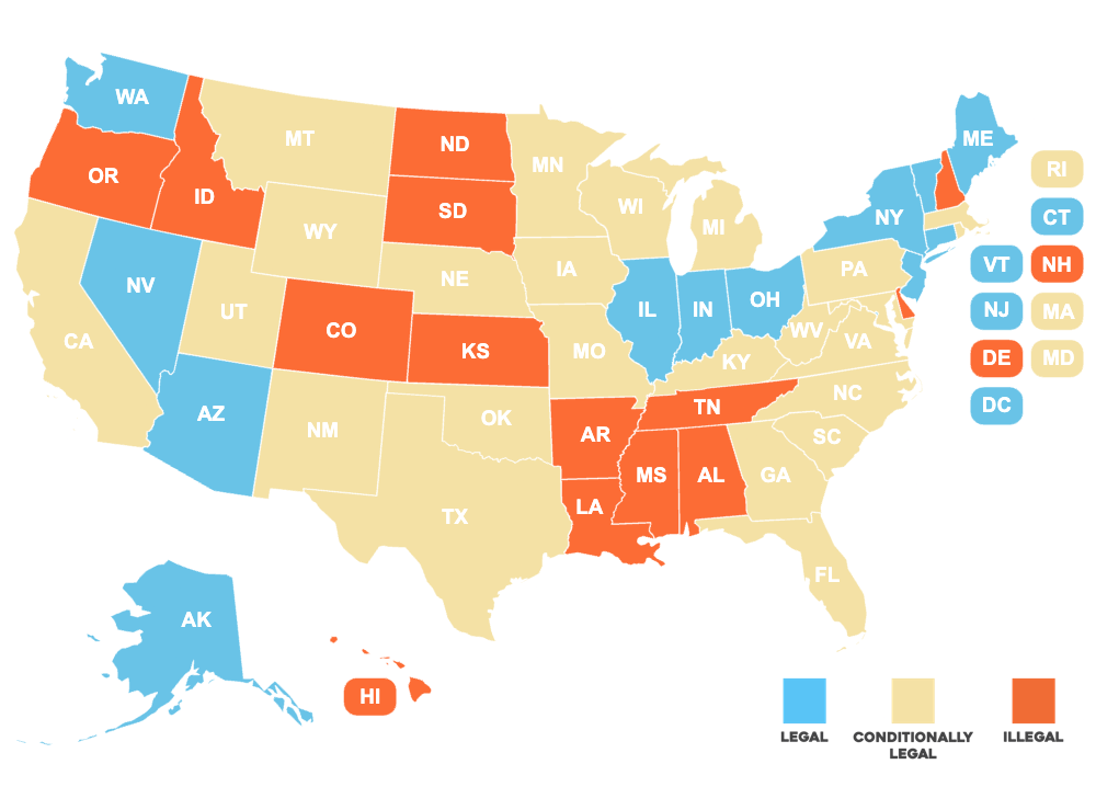 Let's look at what states THCA is legal in, which states outlaw the cannabinoid, and which states have conditional legality.